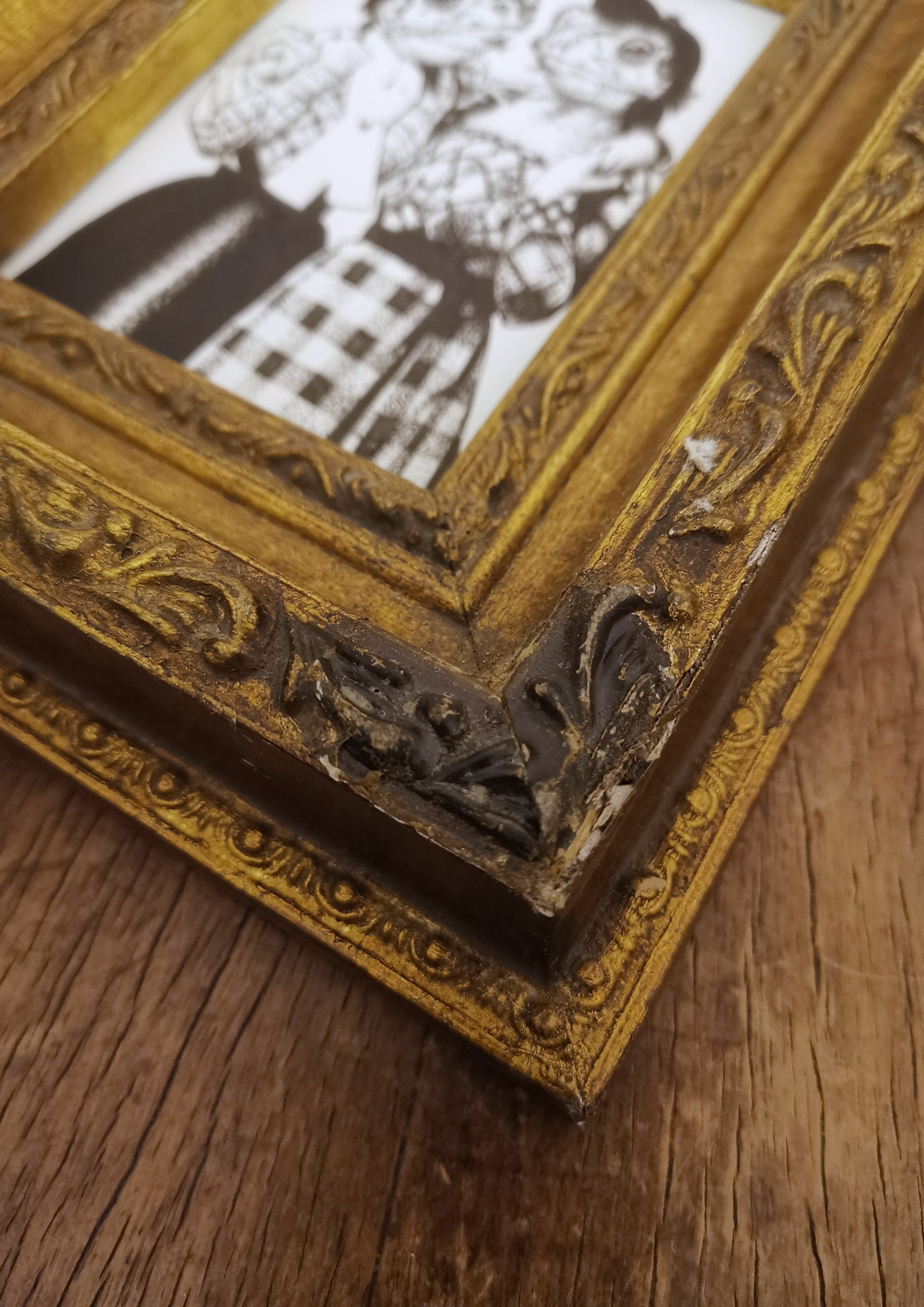 Housed in a beautiful (even if damaged in 3 corners. Check pictures closely!) Florentine wooden gilt frame