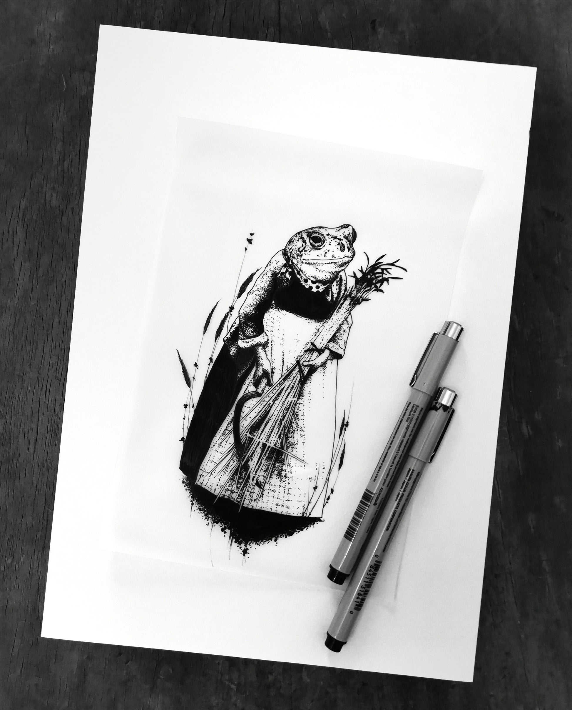 Archival ink pens on tracing paper