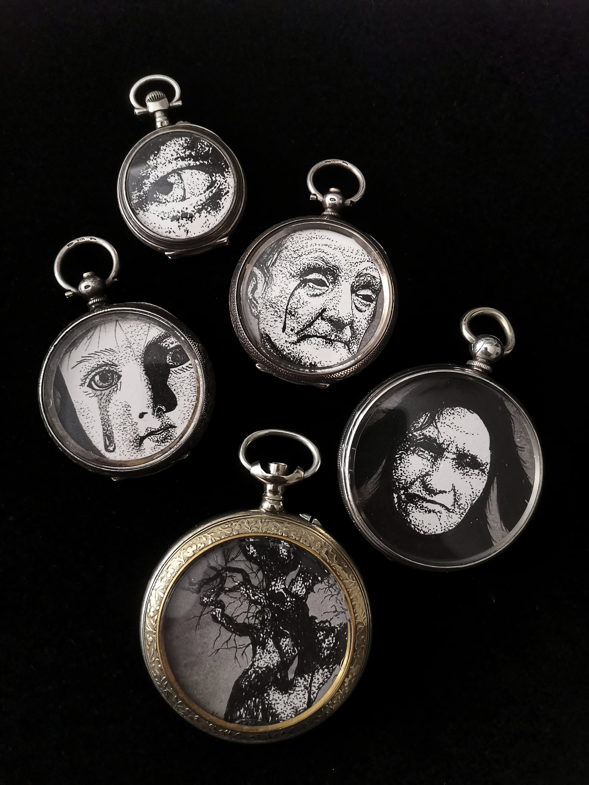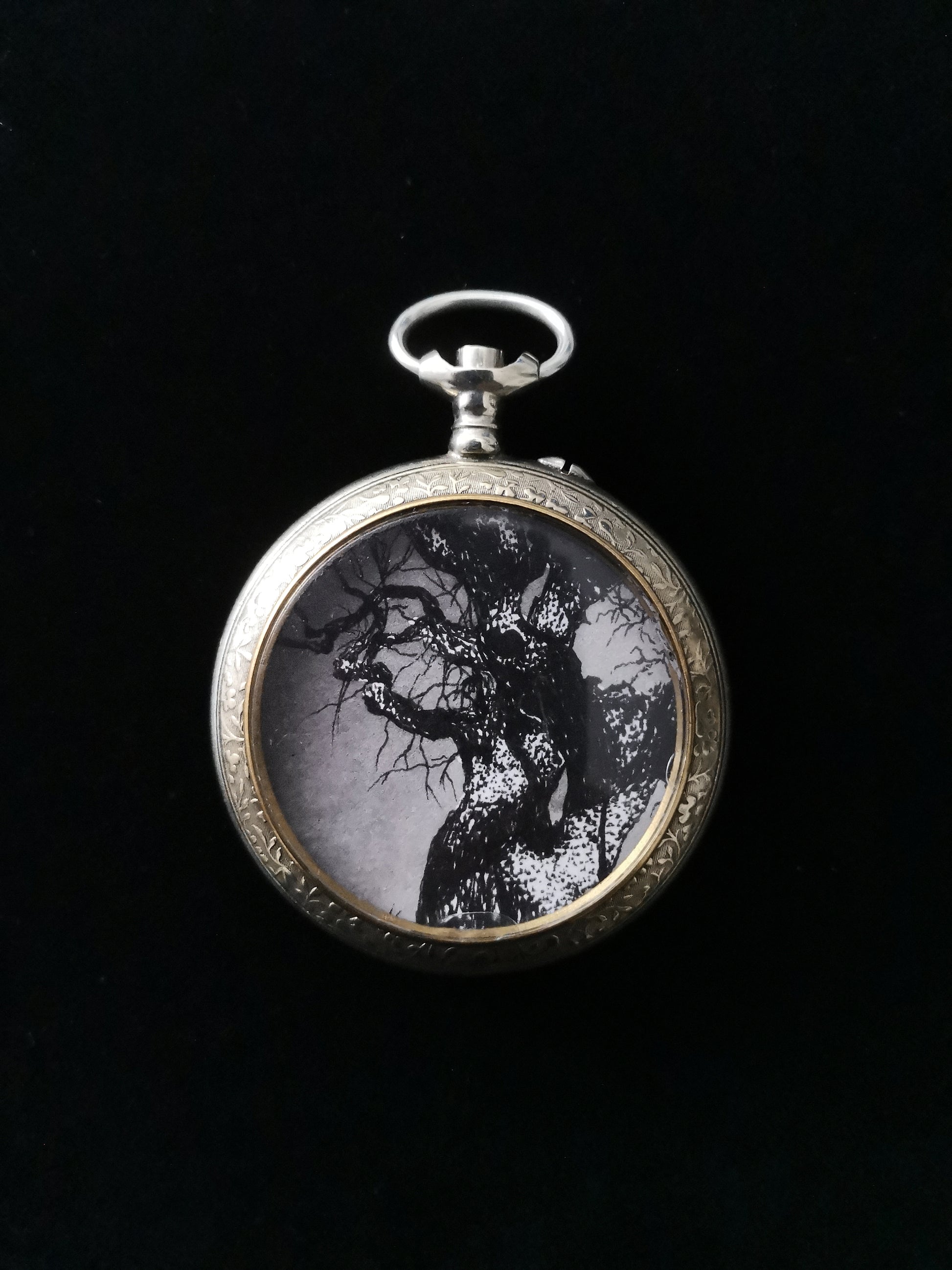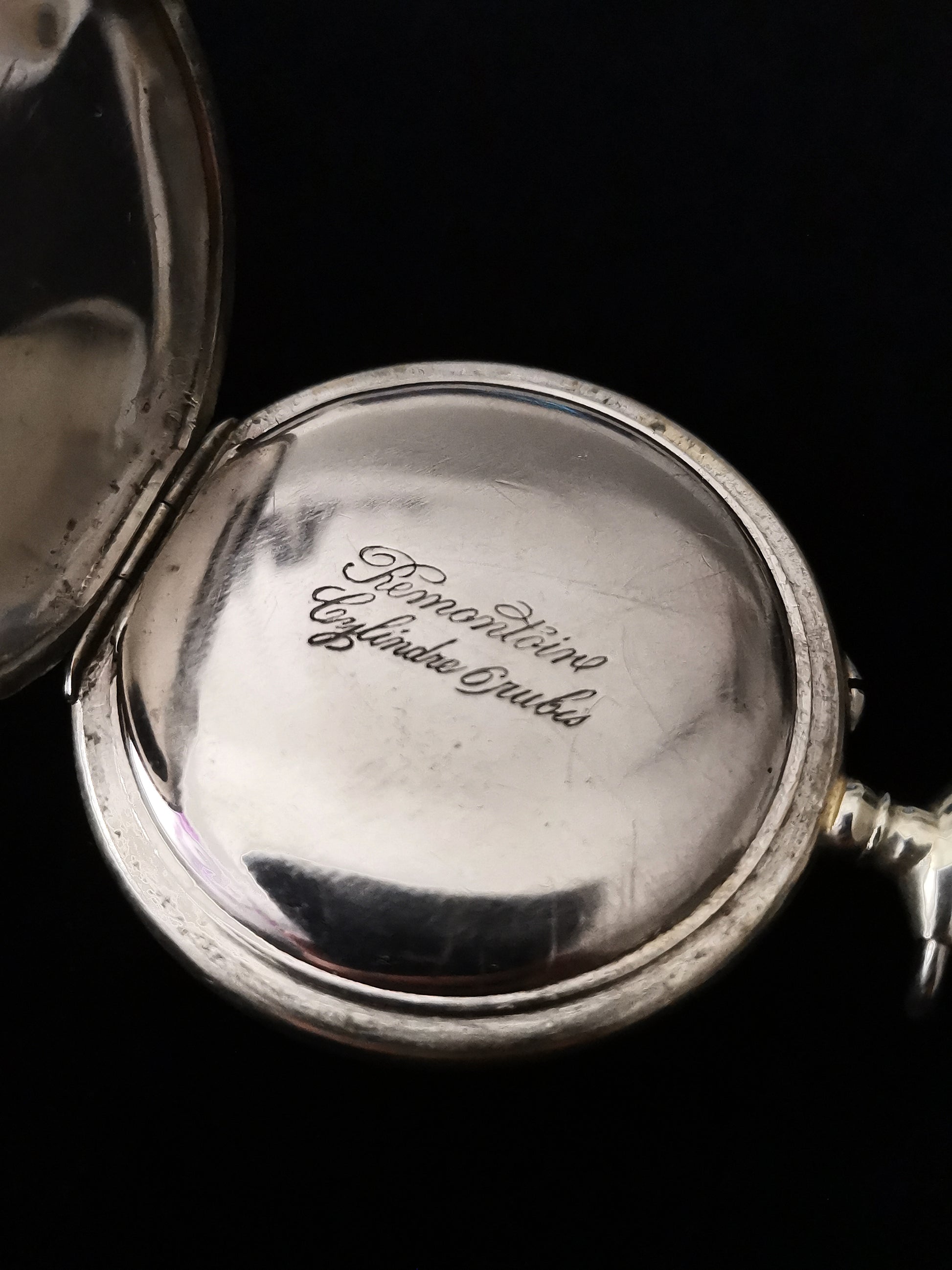 Housed on a lovely, early XX century, pocket watch case. Not Silver.