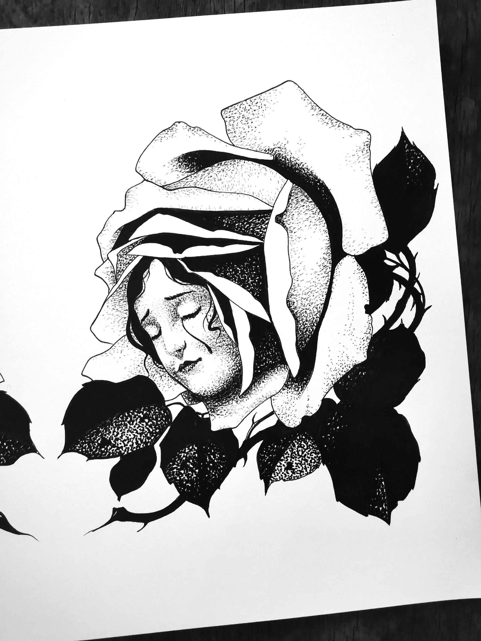 The purchase of an original illustration by El Nigro is for collection and display purpose only. Buyers are not allowed to use the illustrations for tattoos or business purposes. All rights are reserved.