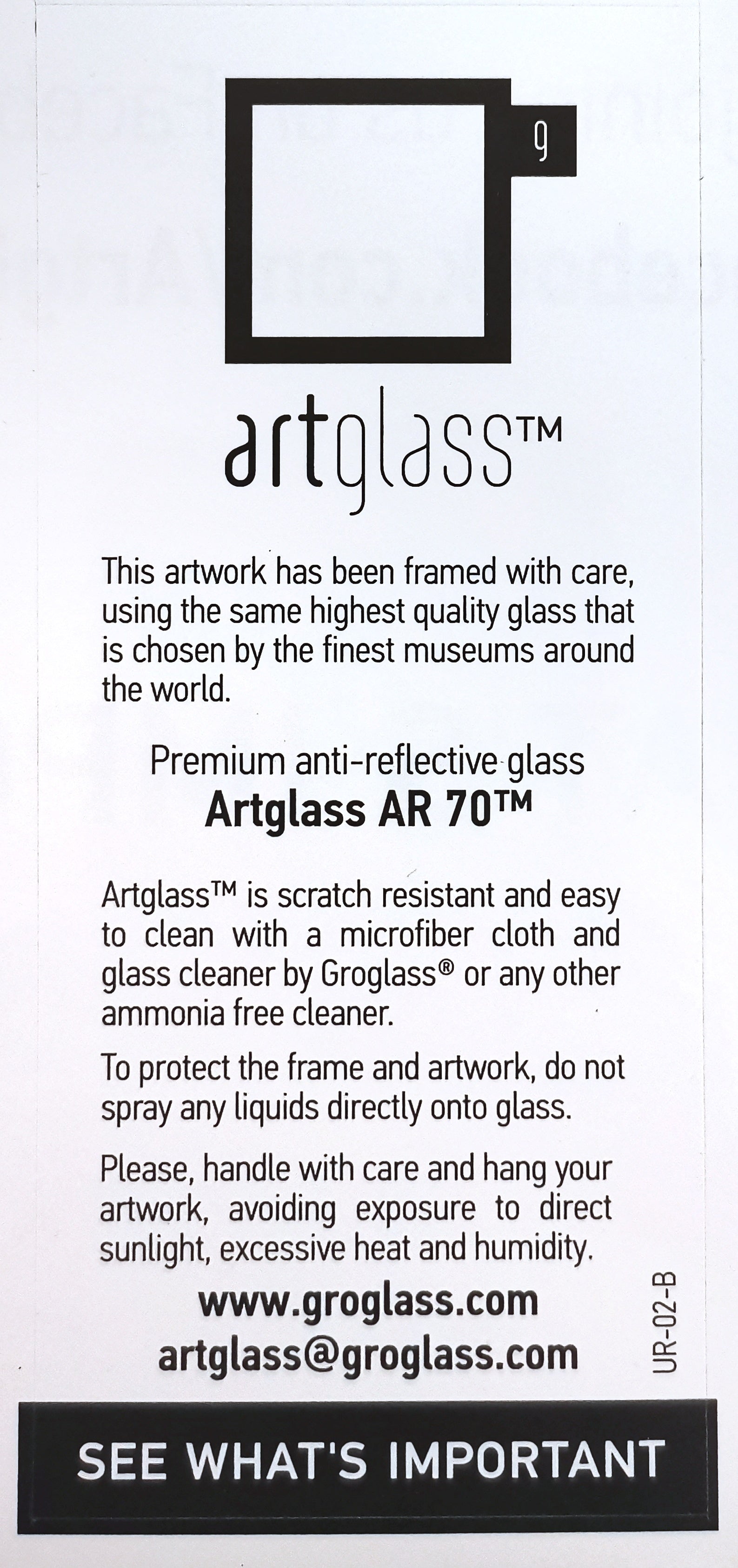 Artwork protected with a Museum quality Premium anti-reflective glass Artglass AR70
