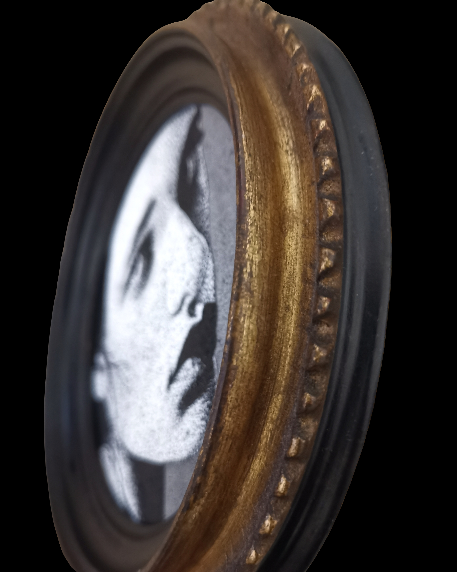 Housed in a beautiful Florentine wooden gilt and enamel frame
