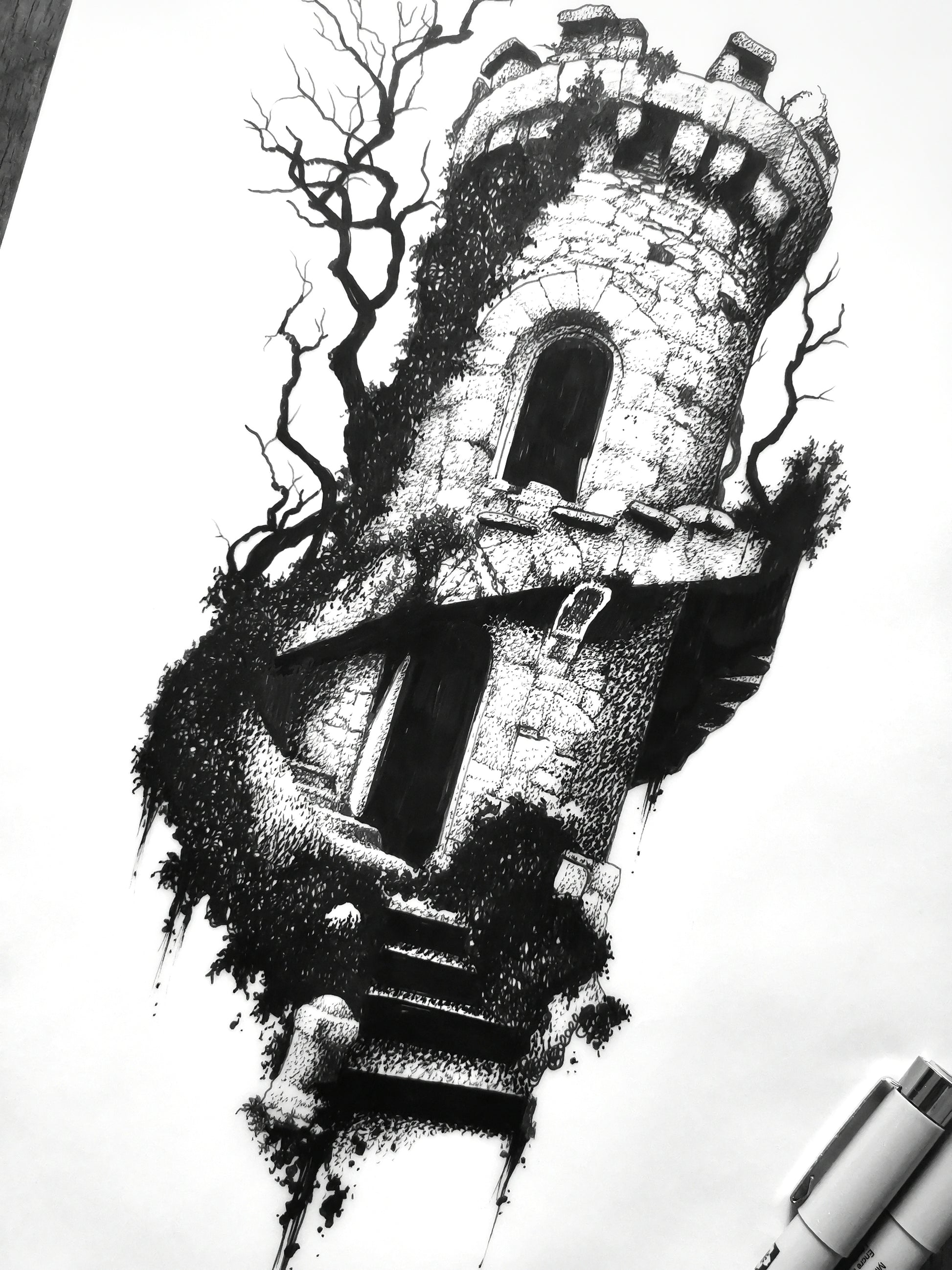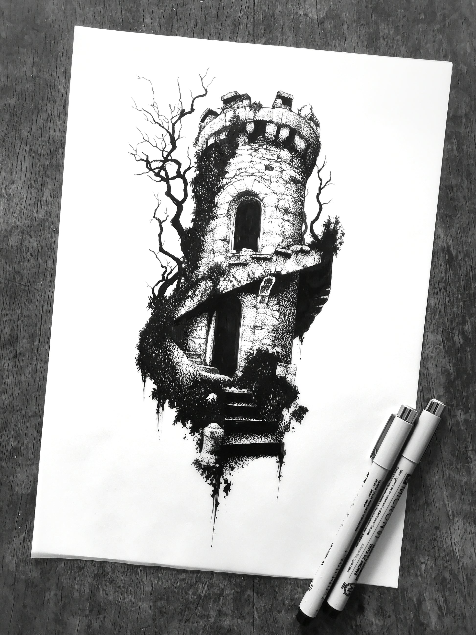Archival ink pens on tracing paper