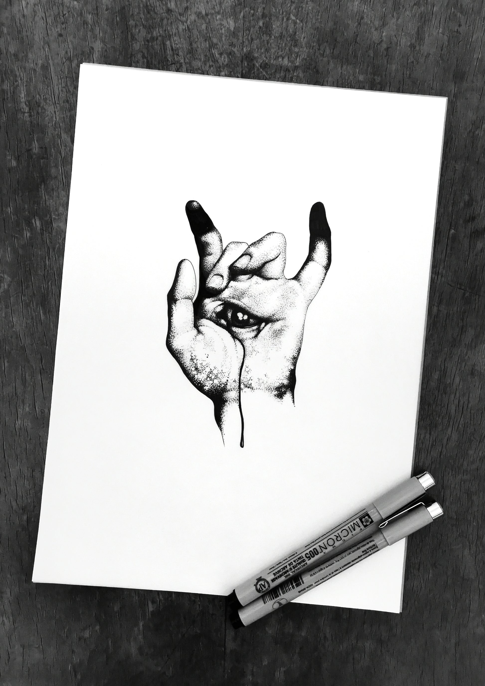 Archival ink pens on tracing paper