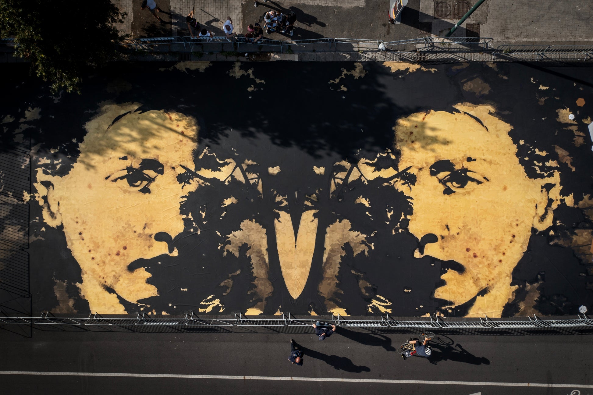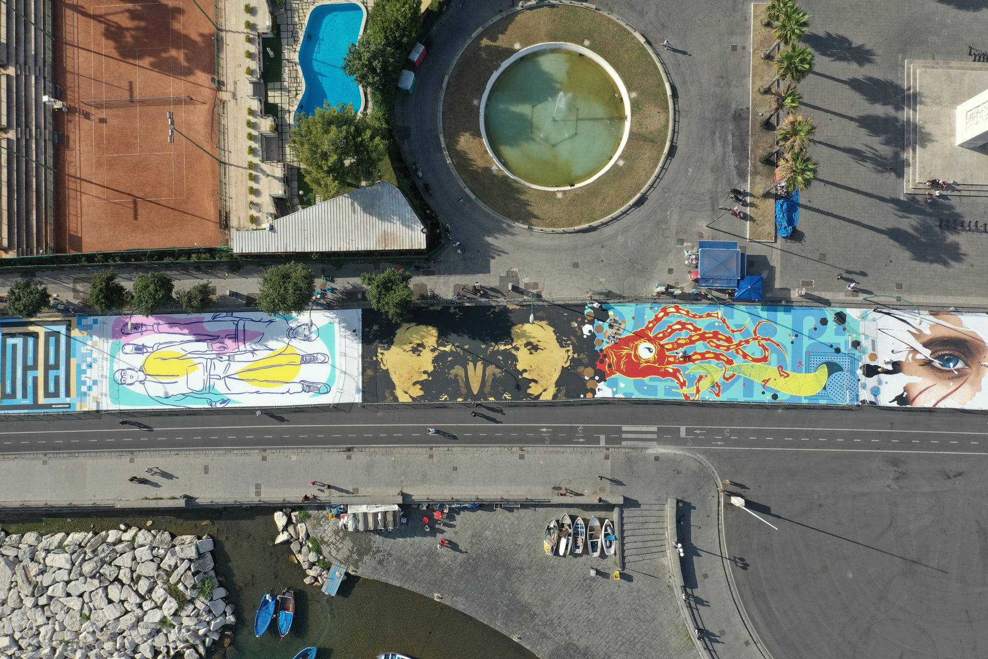 In July 2021 a mirrored version of this subject has been painted by El Nigro on a pvc surface of 11x30 meters during a 3 days public art event in Naples. It has been published by several newspapers and shown on the most important national TV news.