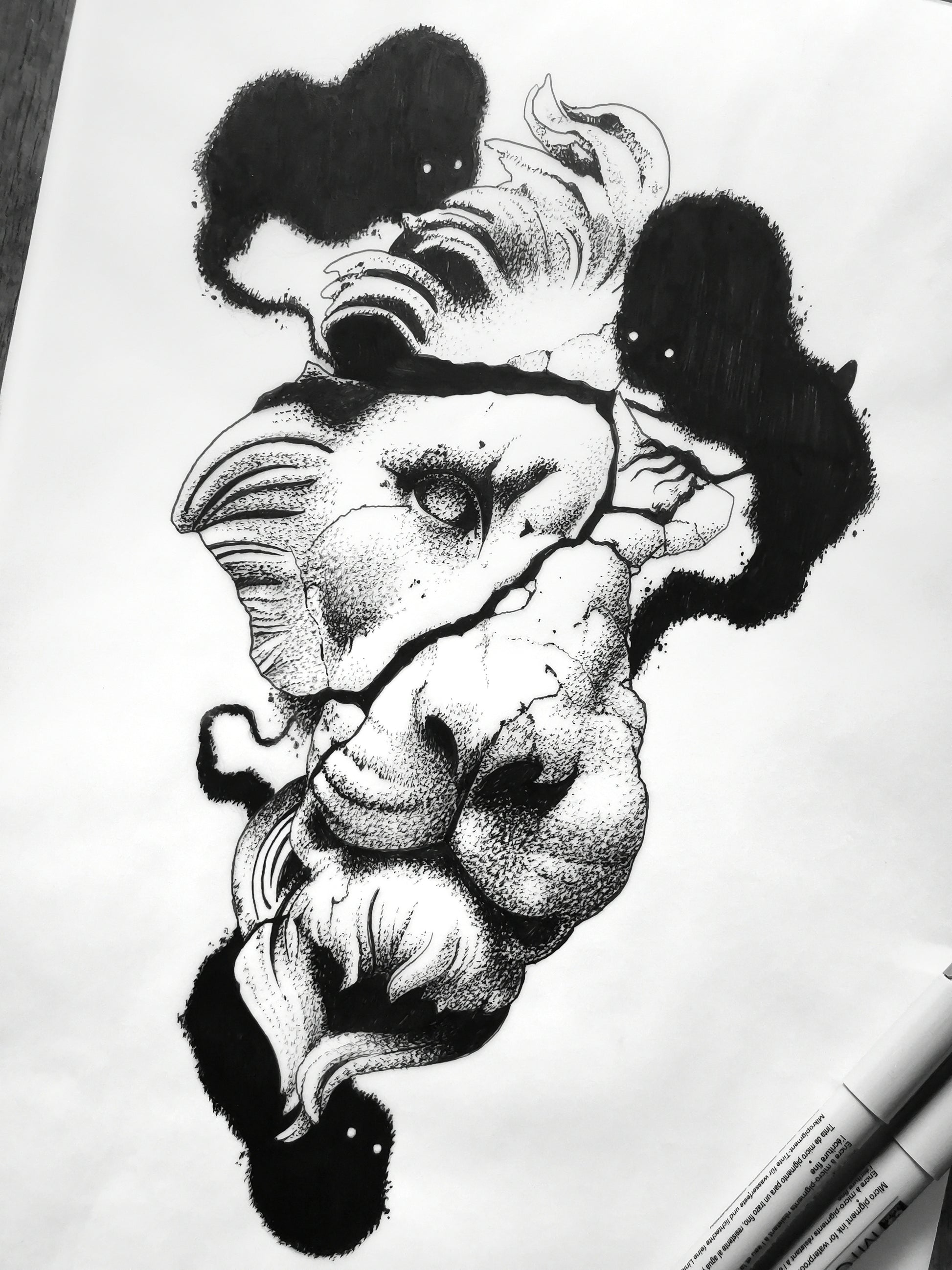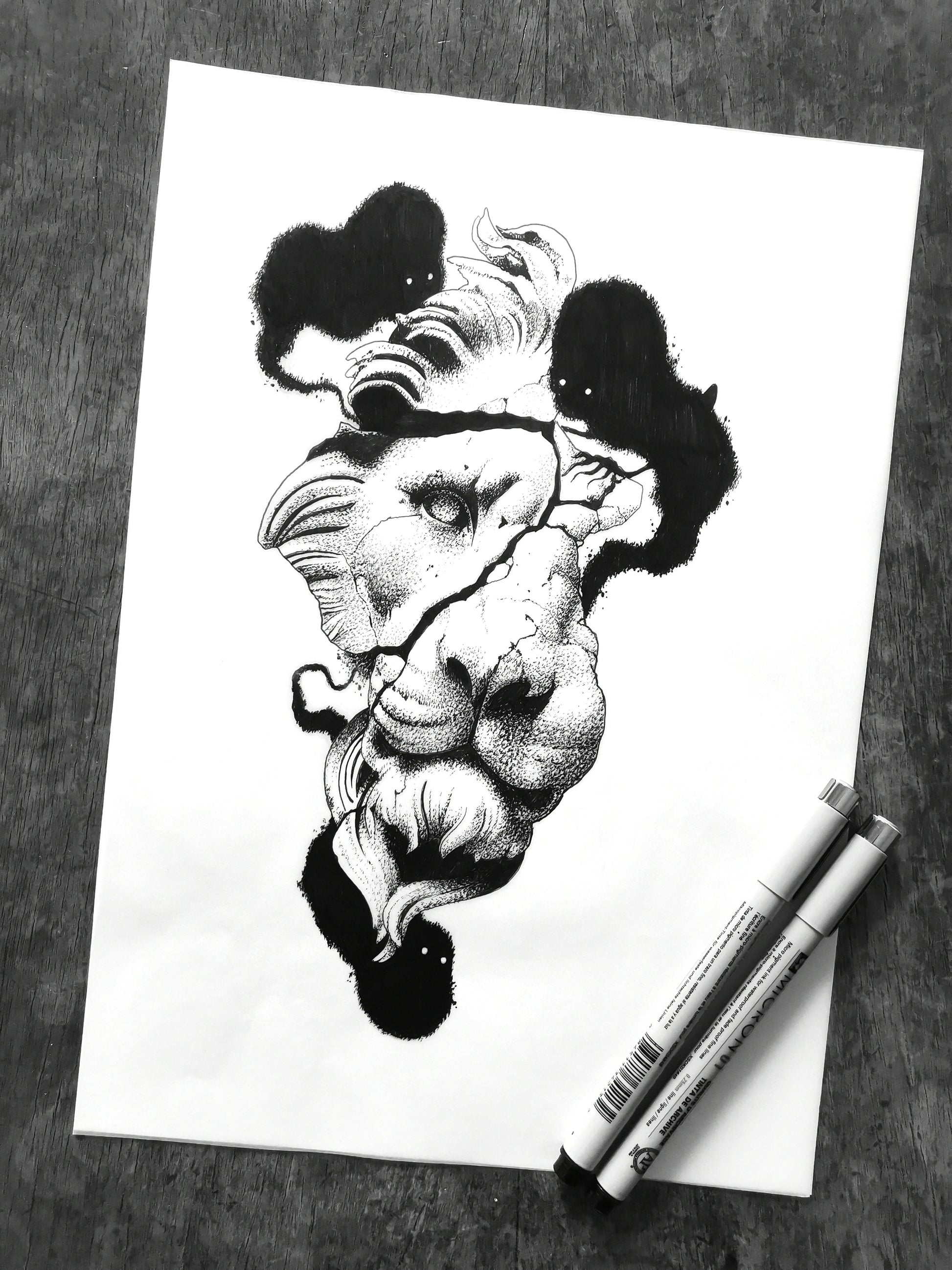 Archival ink pens on tracing paper