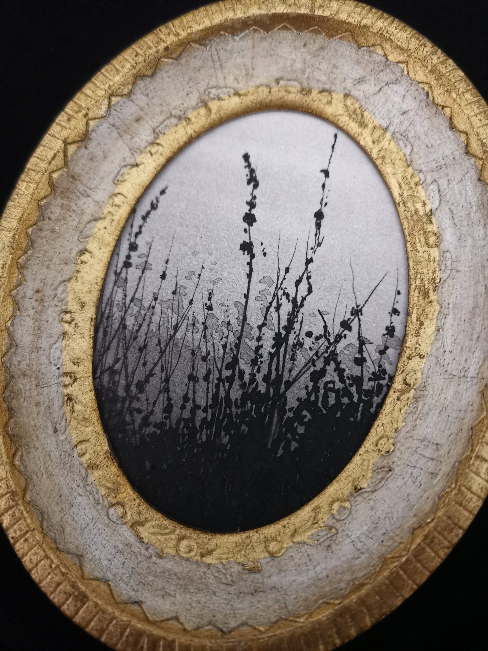 Housed in a beautiful Florentine wooden gilt and enamel oval frame