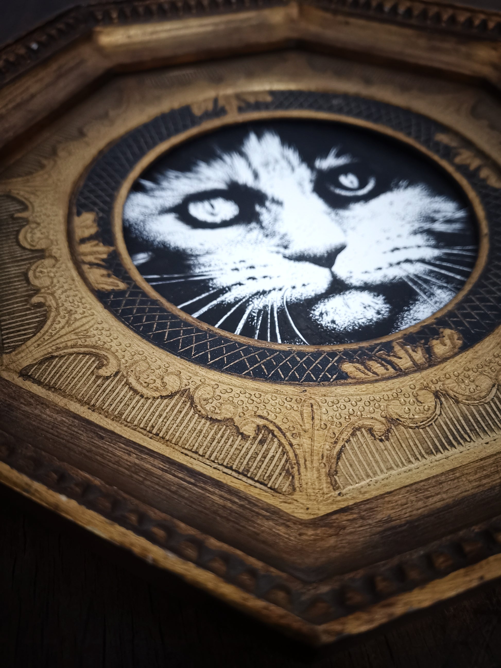 Housed in a very unique octagonal wooden gilt frame with original convex glass