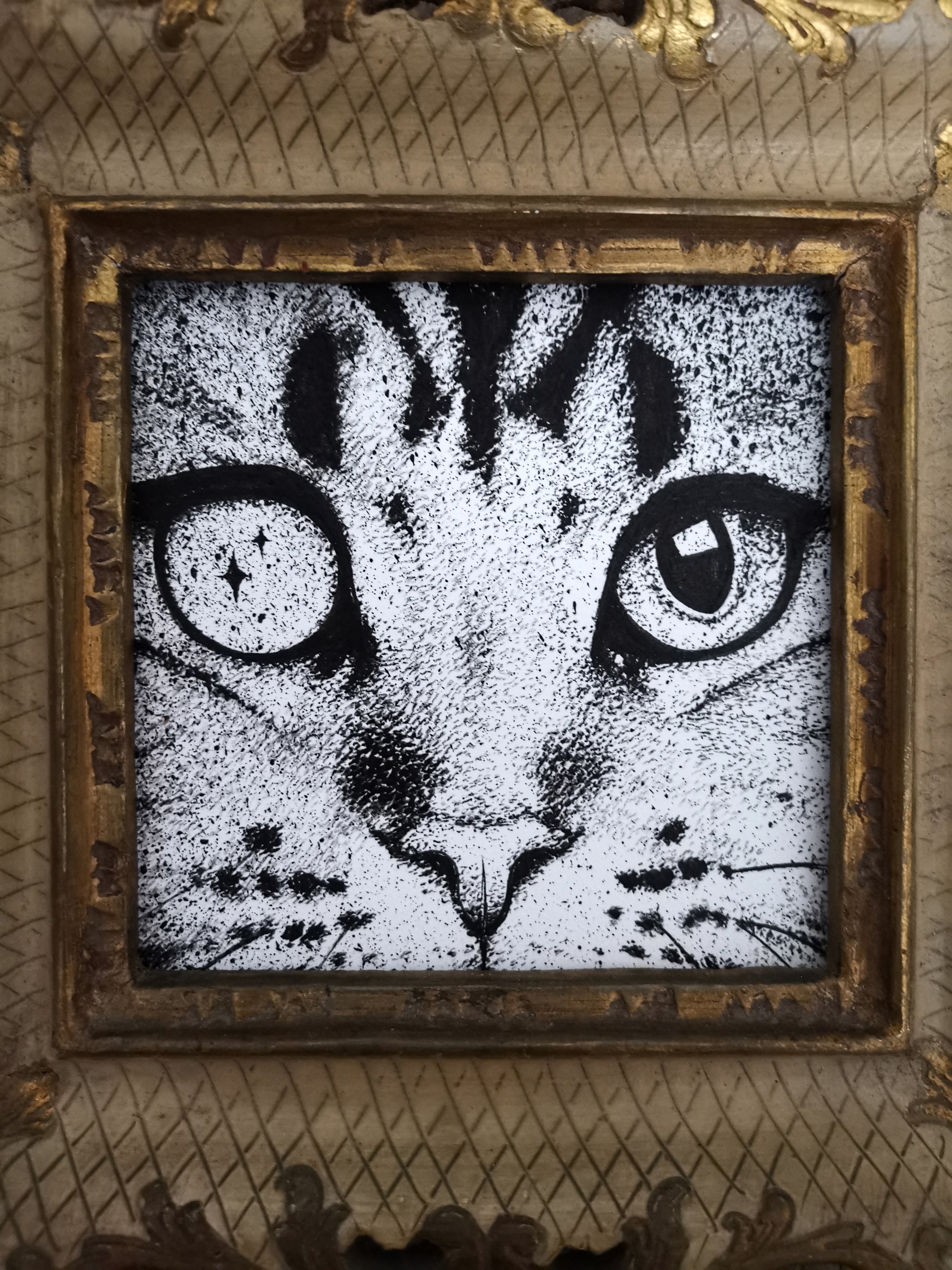 Housed in a lovely mid century wooden gilt and enamel square frame