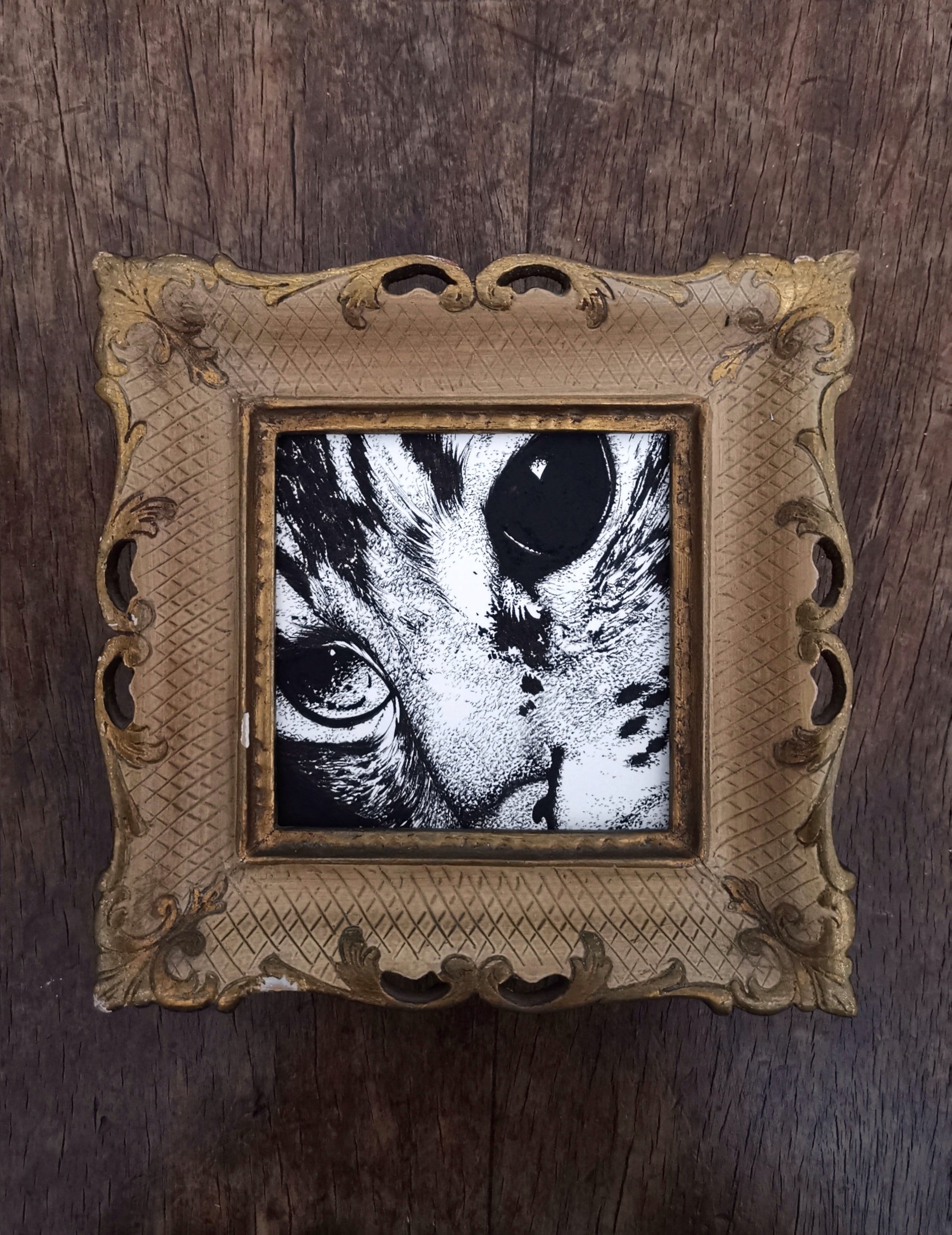 Housed in a lovely mid century wooden gilt and enamel square frame