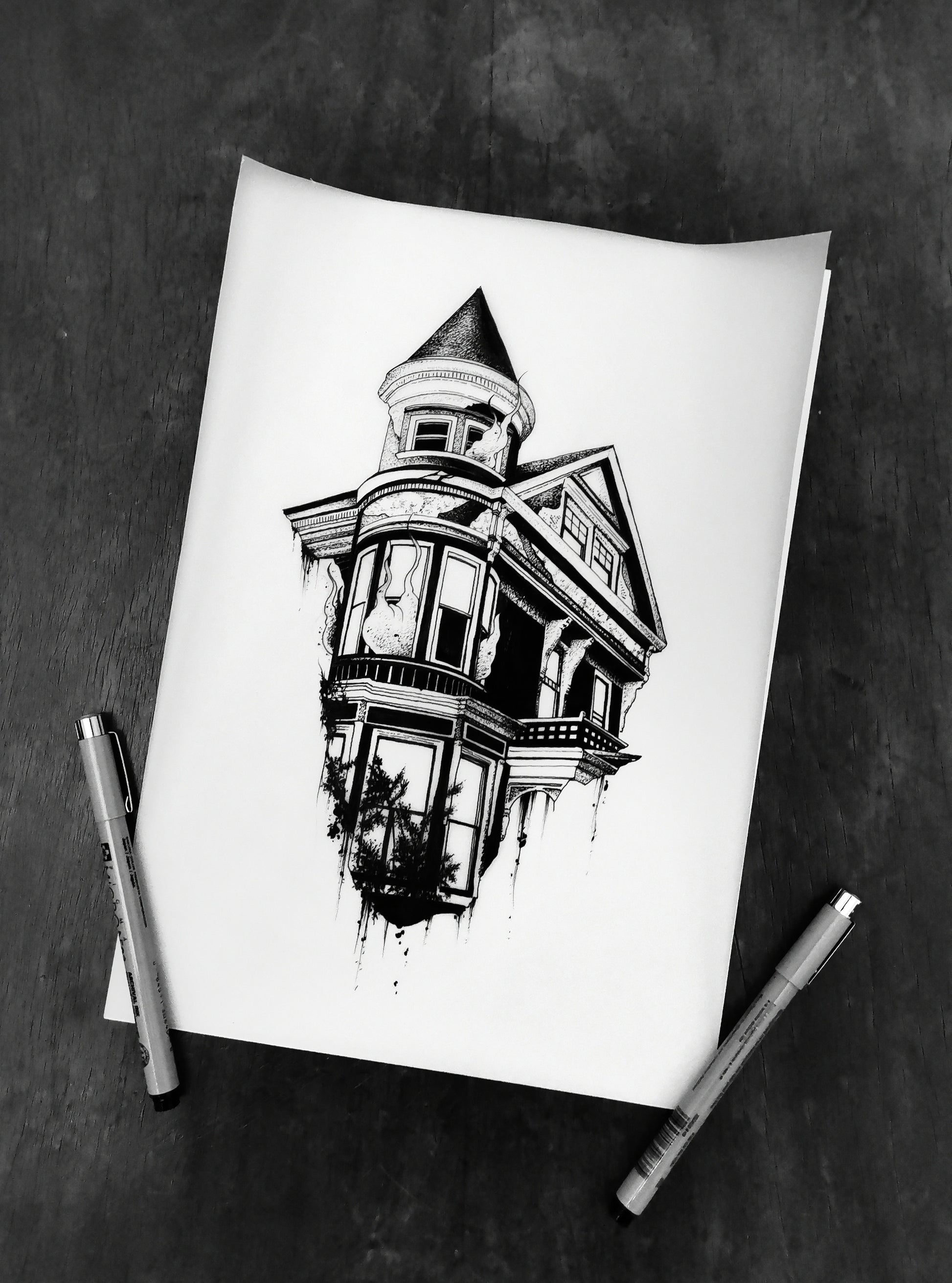 Archival ink pens on tracing paper