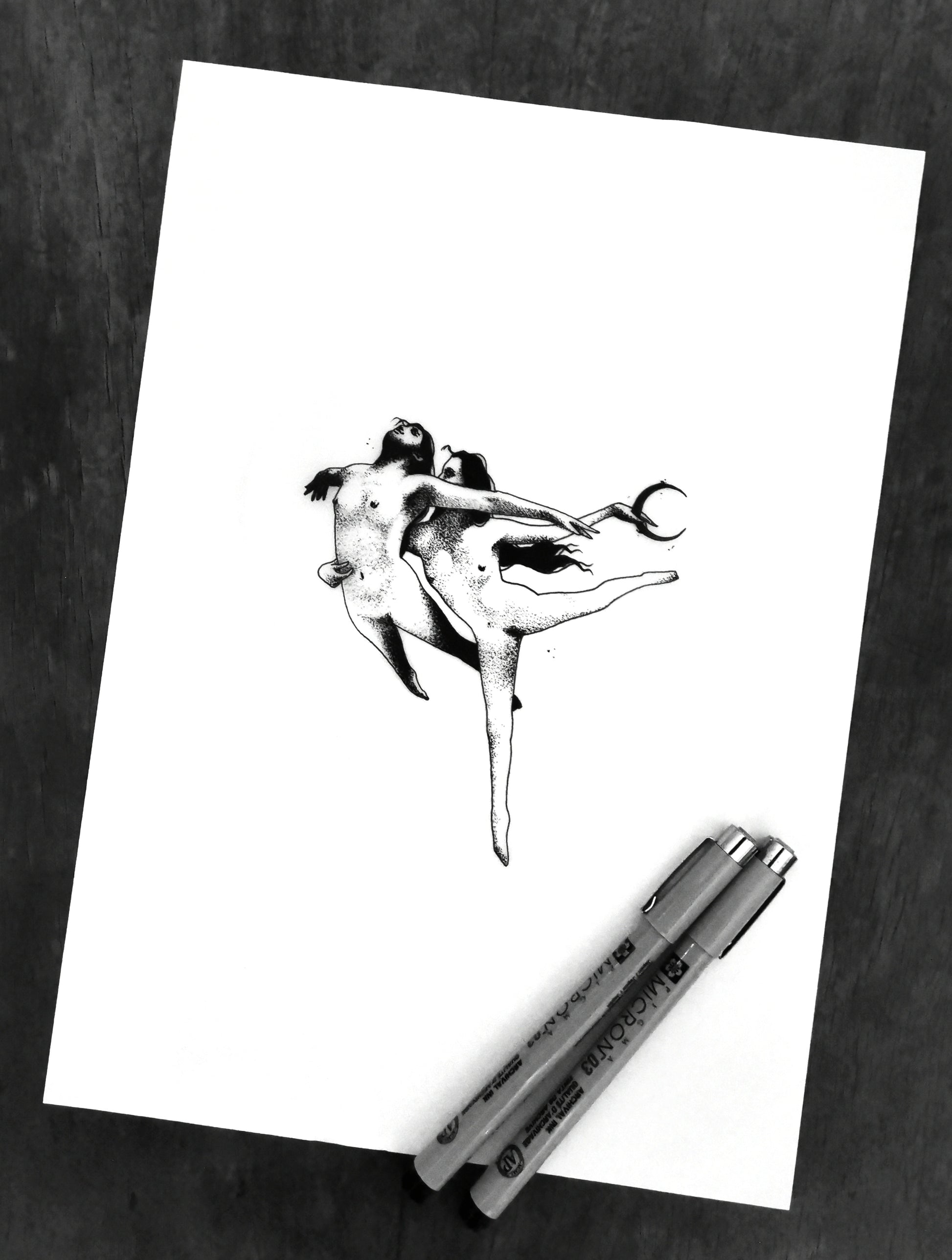 Archival ink pens on tracing paper