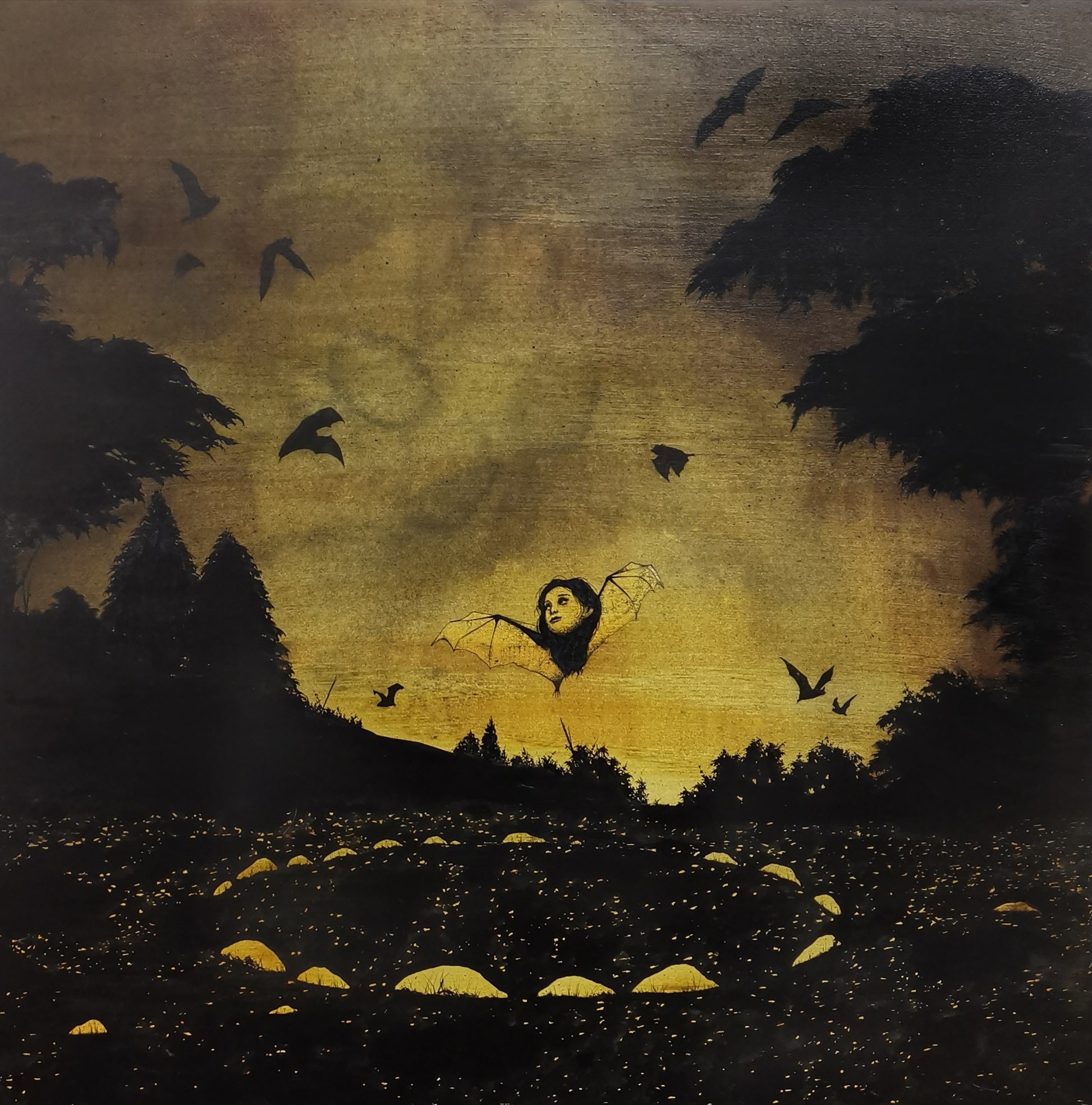 Original mixed media painting on Arches cotton paper mounted on a tamboured silver fir plywood panel.