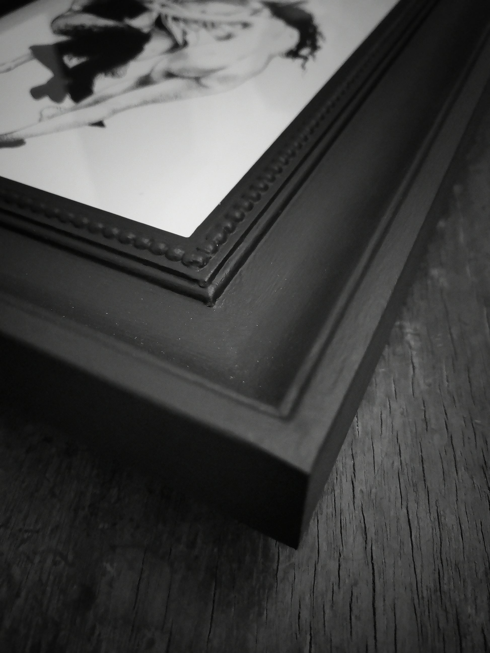 Housed in a beautiful handcrafted wooden frame, matte black painted