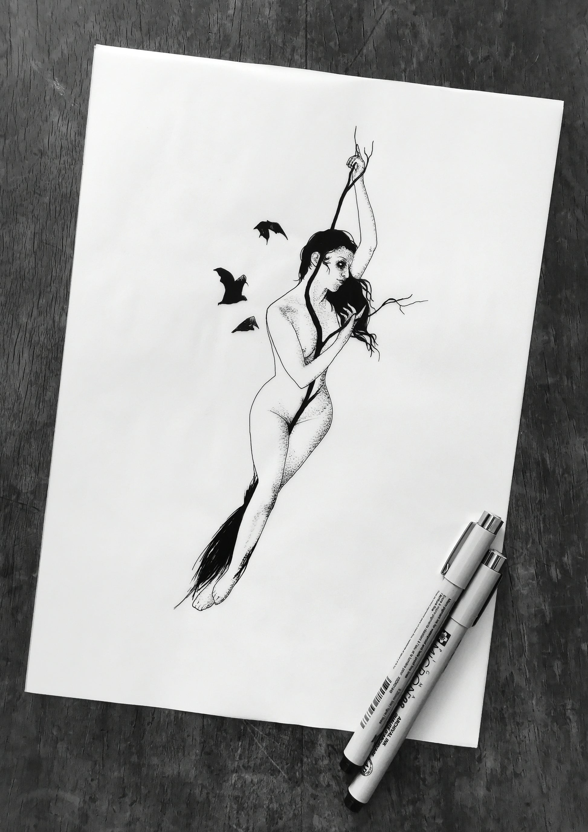 Archival ink pens on tracing paper