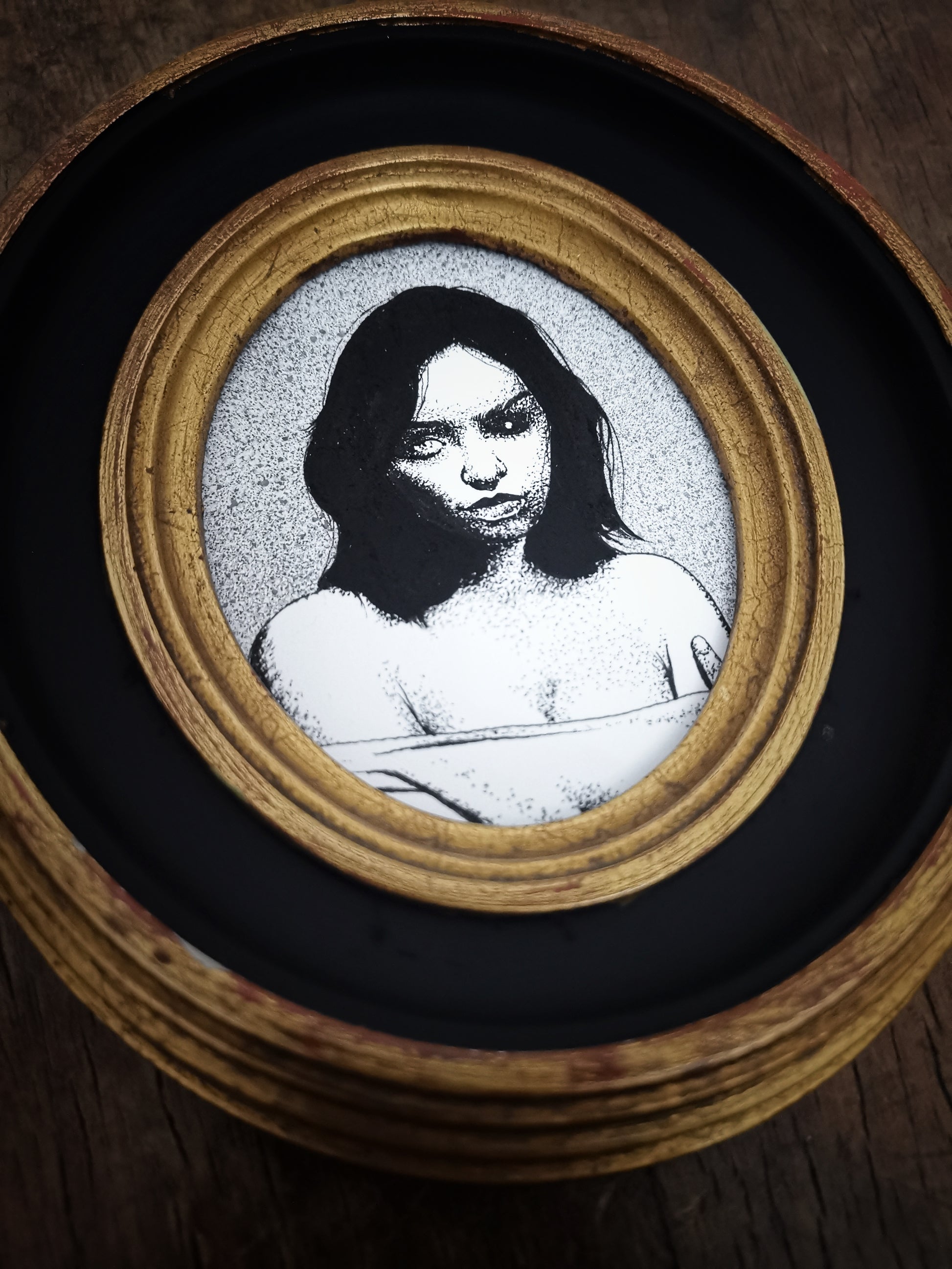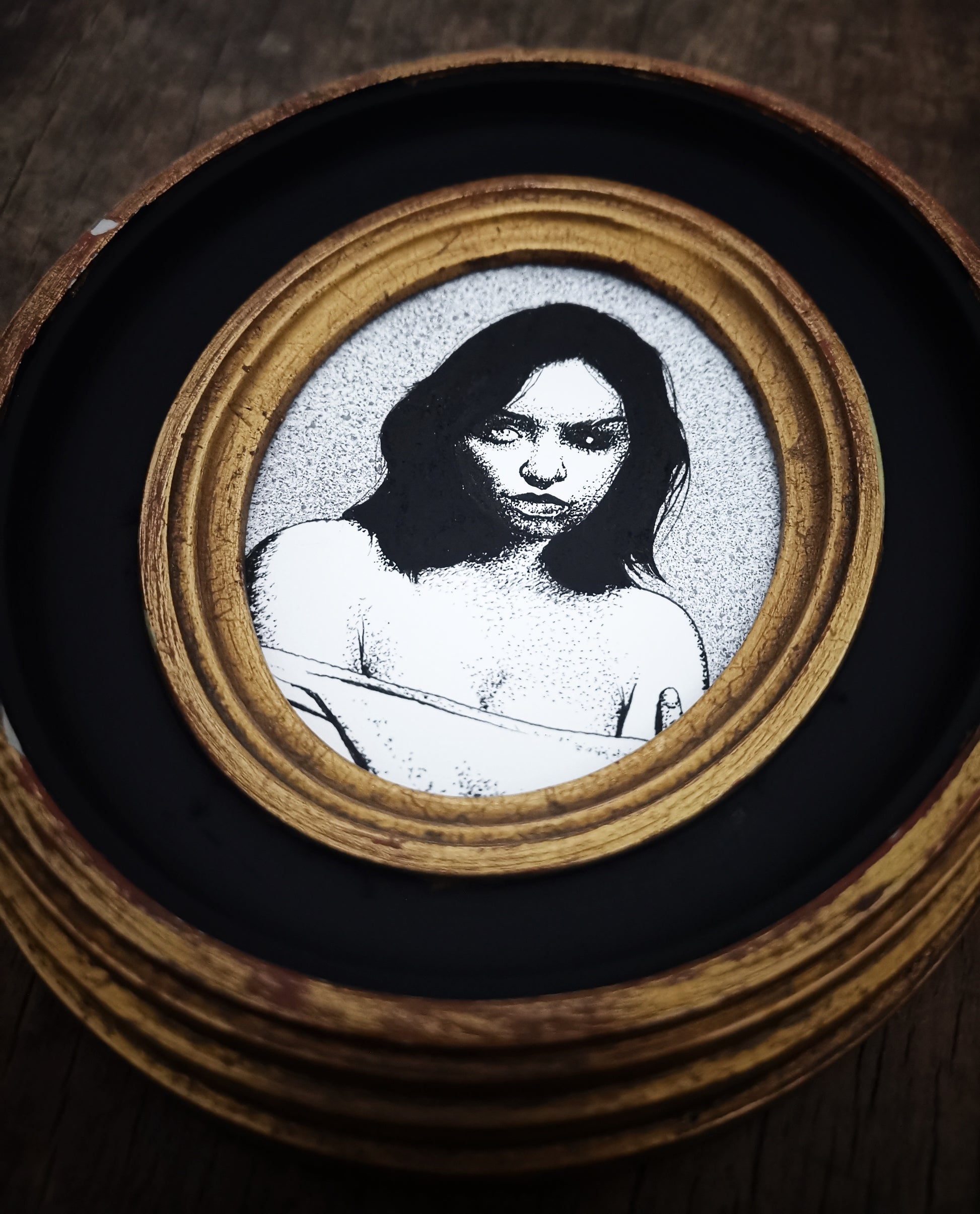Housed in a beautiful Florentine wooden gilt/enamel oval frame