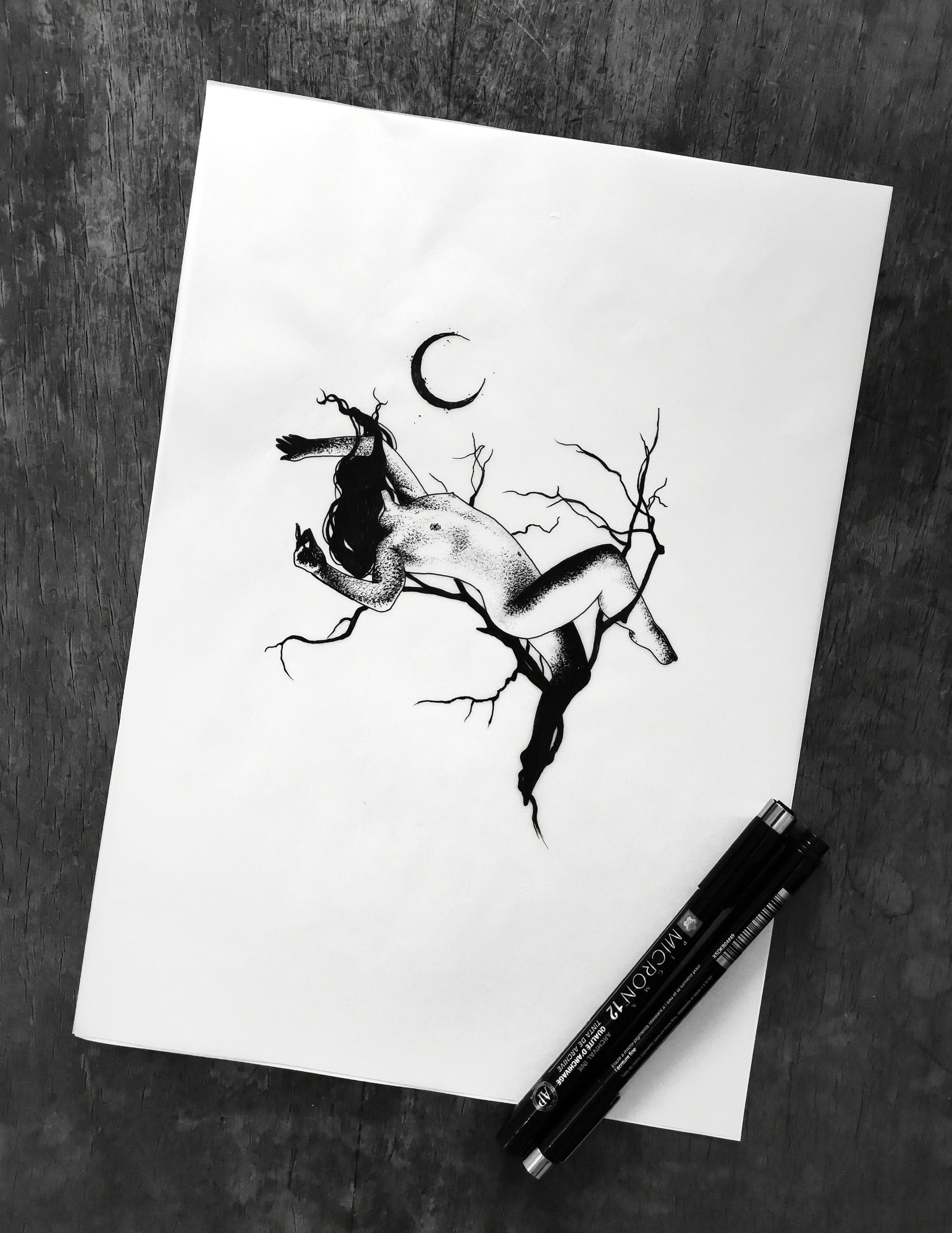 Archival ink pens on tracing paper