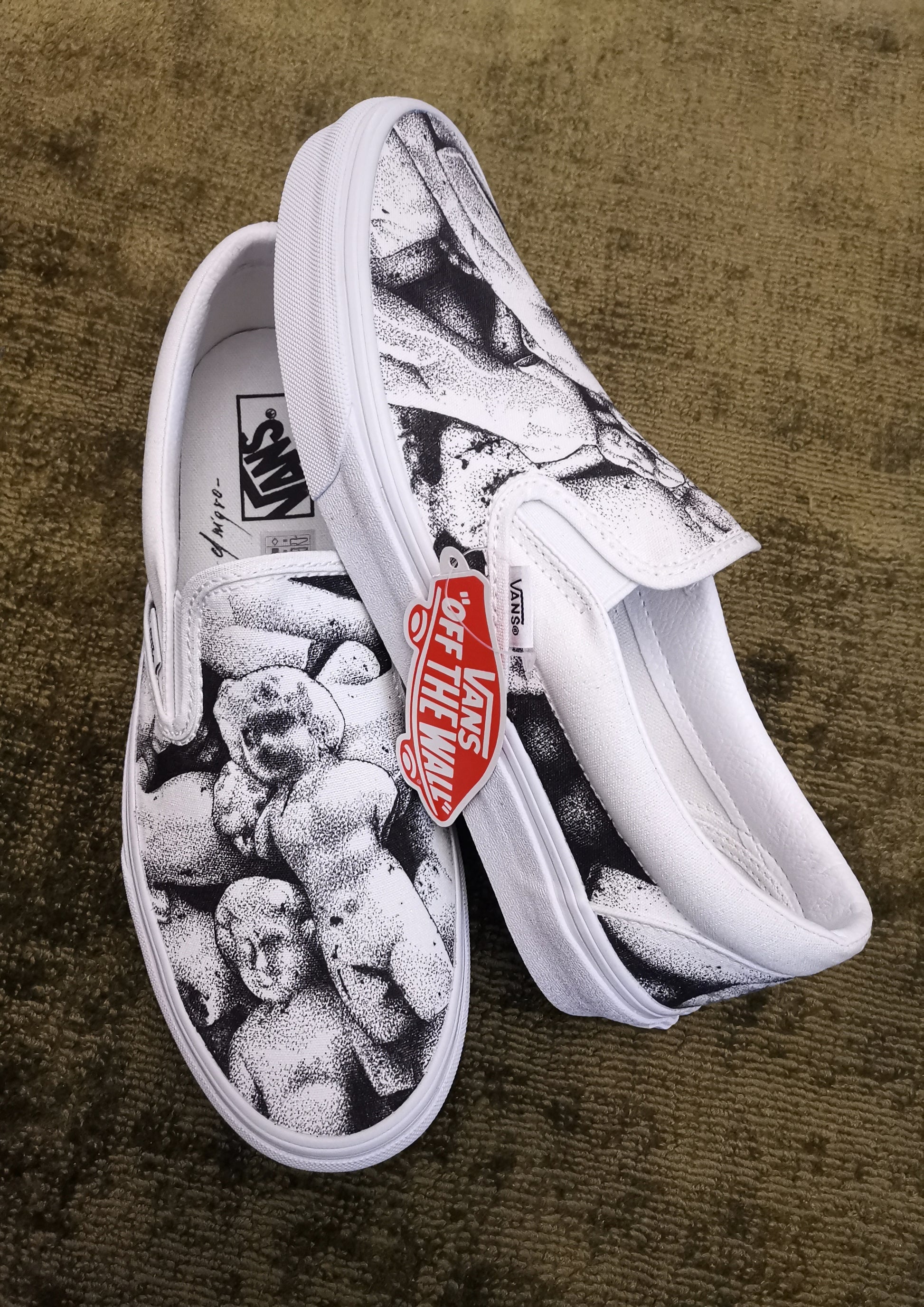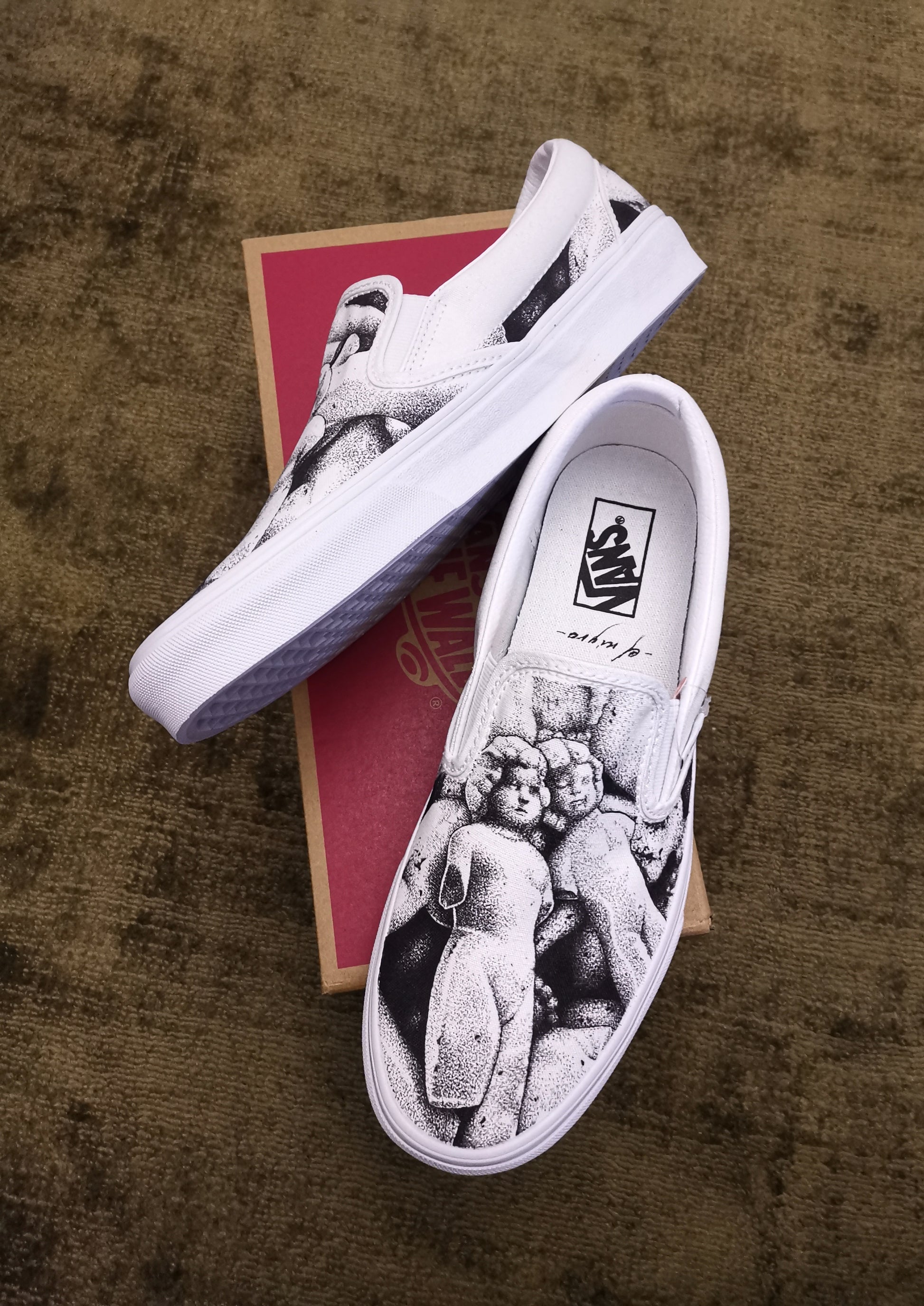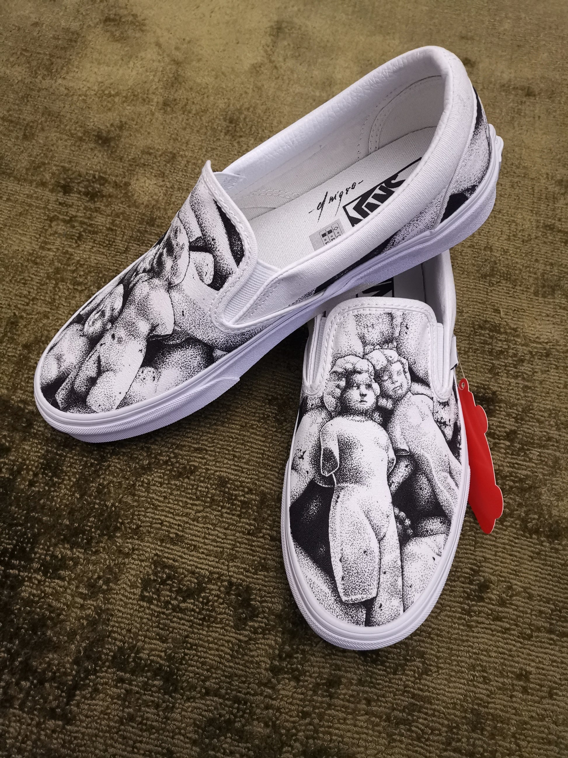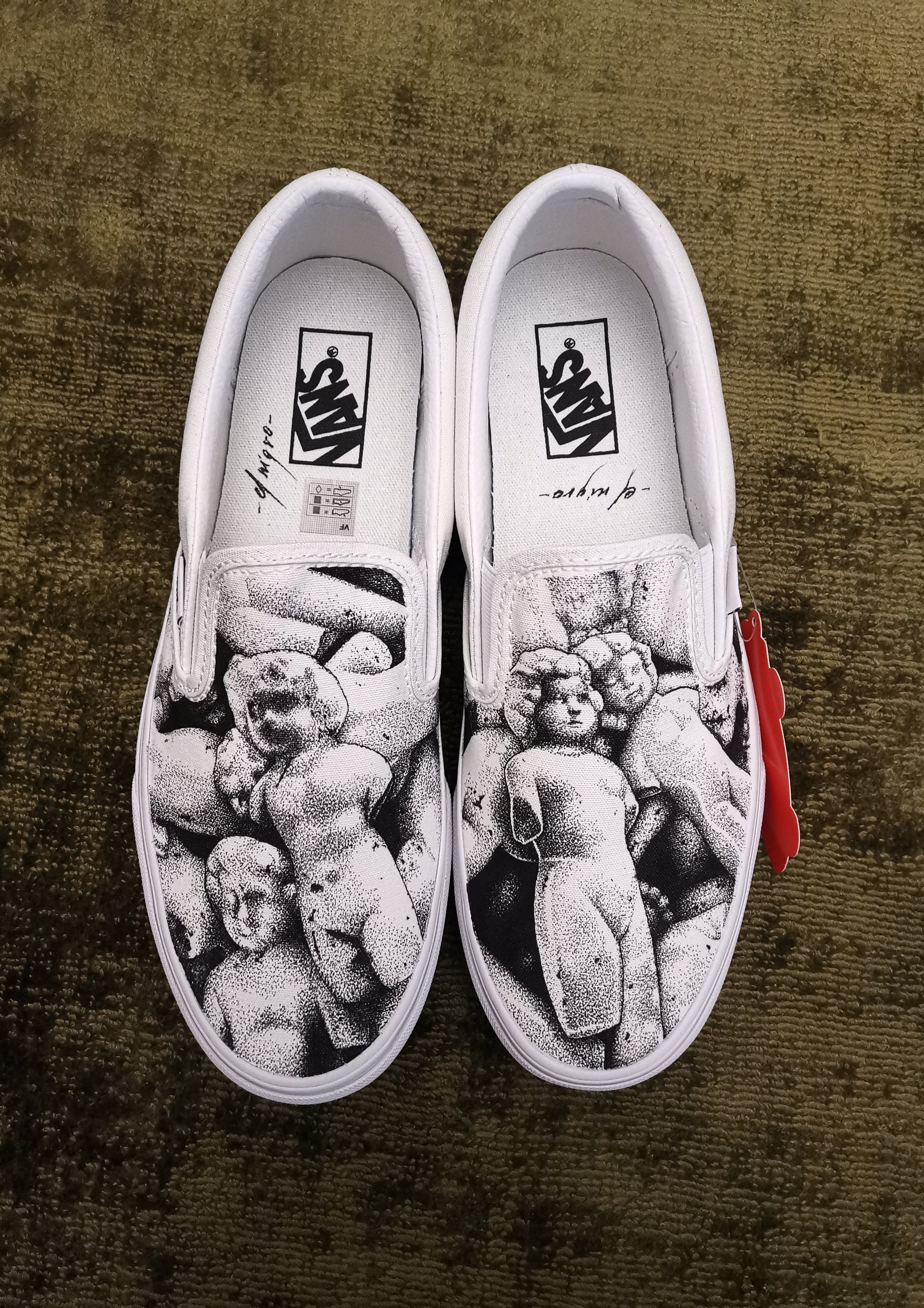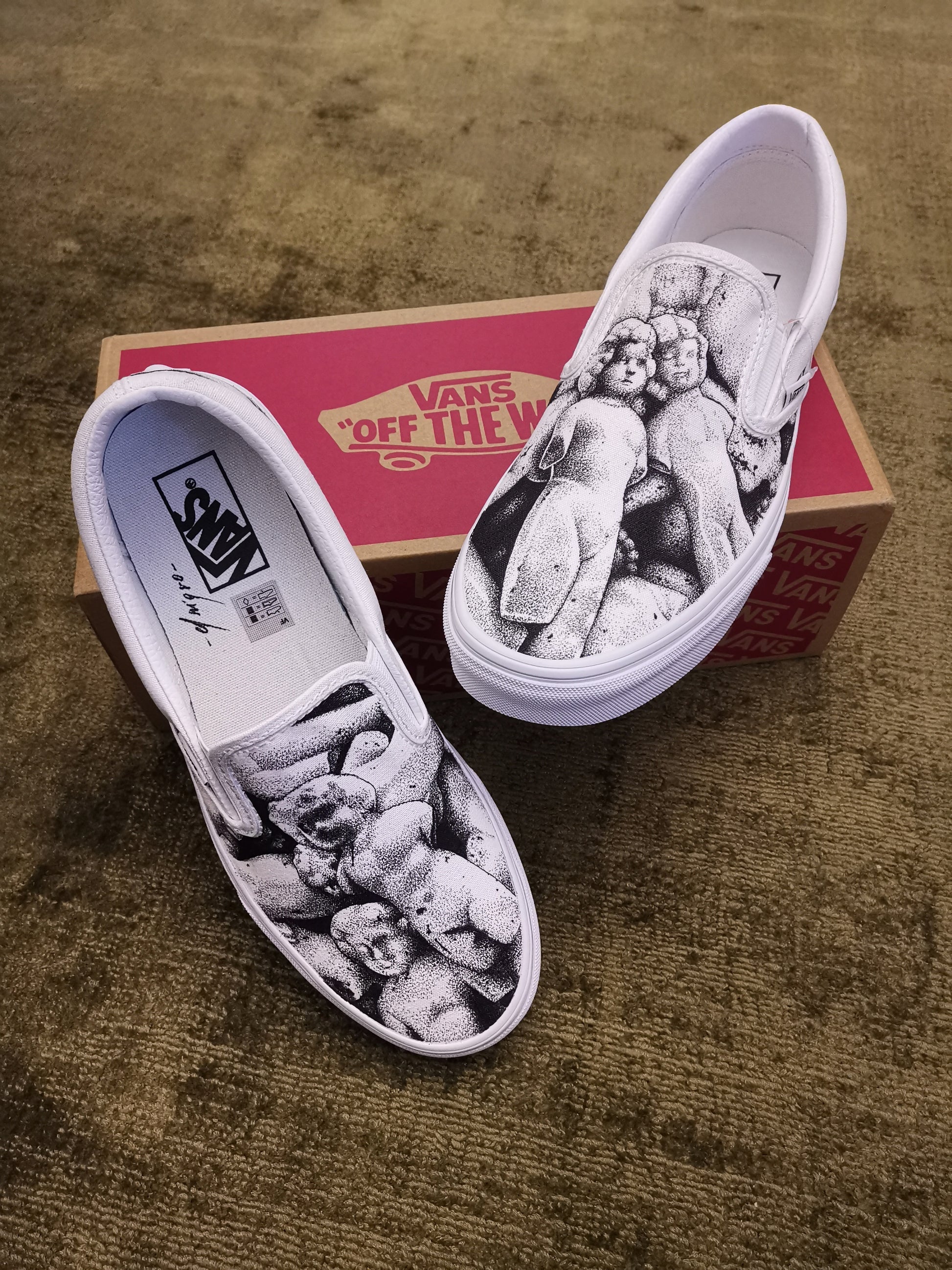 THIS PRODUCT HAS TO BE CONSIDERED AS AN ARTWORK. THE ILLUSTRATION HAS BEEN MADE WITH MICRO PIGMENT INK FOR WATERPROOF AND FADE PROOF FINE LINE WORK. ALSO SEALED ONCE COMPLETELY DRY. FOR THAT REASON THEY ARE TECHNICALLY FULLY WEARABLE BUT WE DECLINE ANY RESPONSIBILITY IN CASE OF DAMAGES DURING THEIR USE OR WASHING.