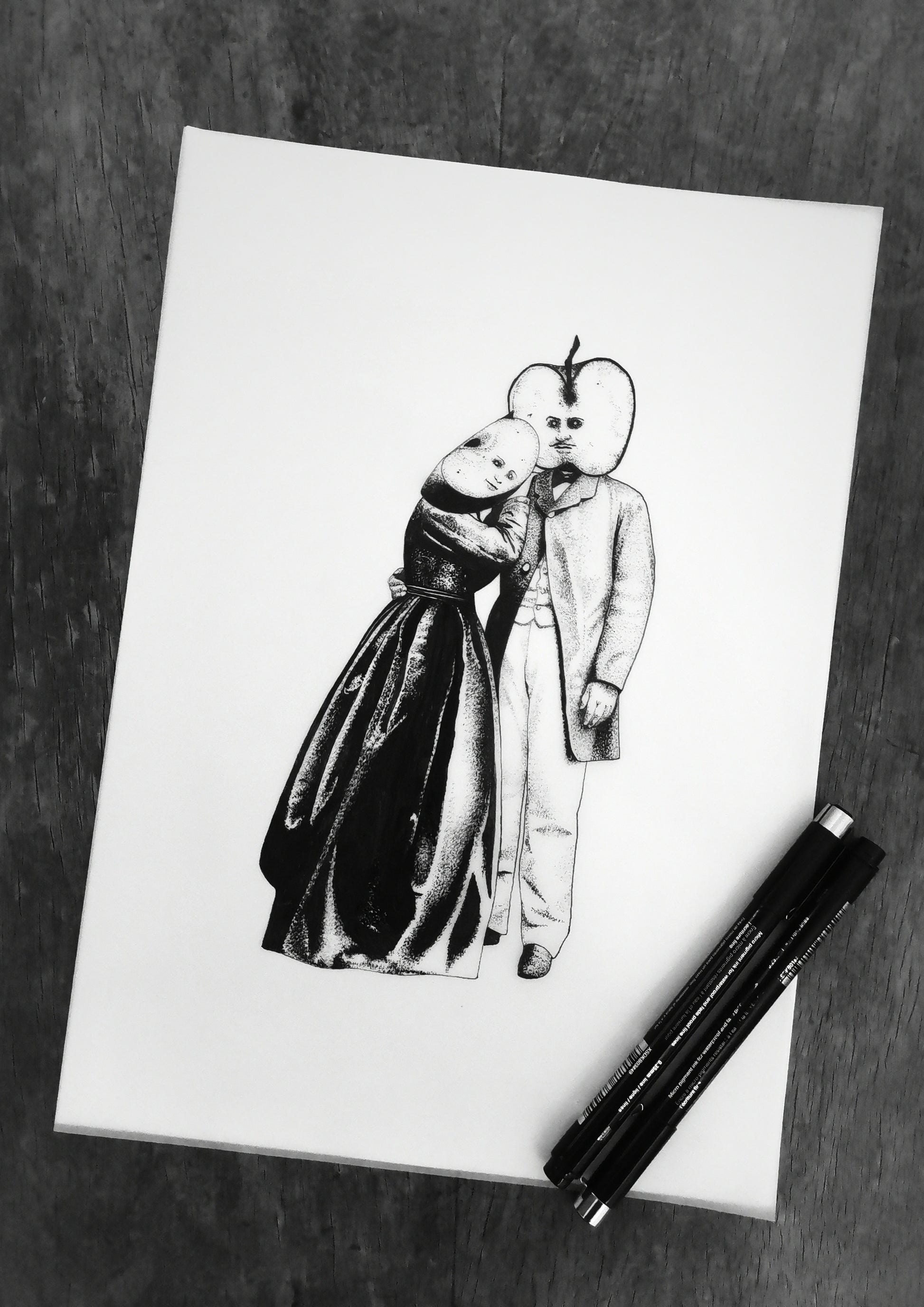 Archival ink pens on tracing paper